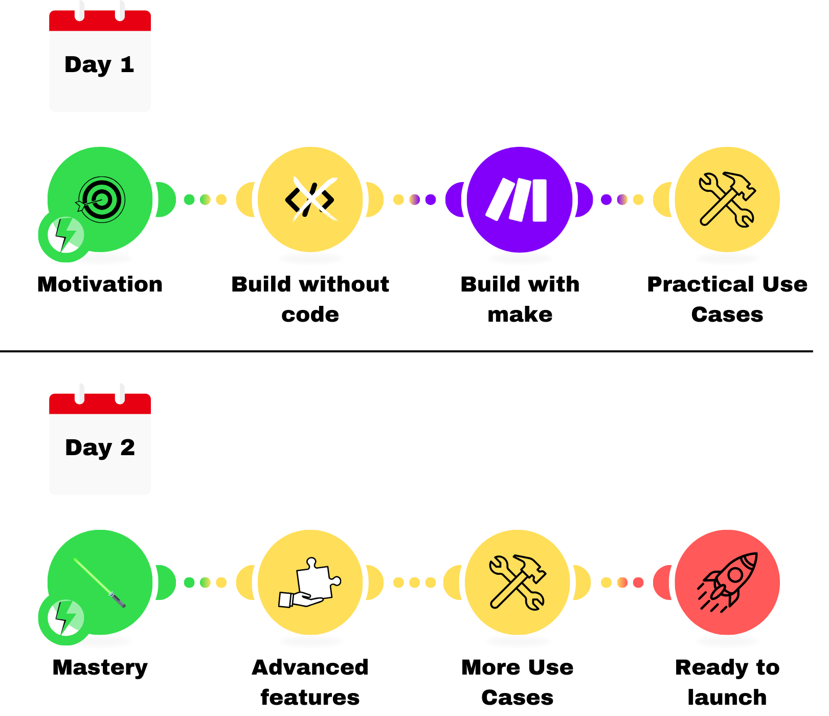 We will primarily work with make to build our workflows.We will also learn basics of airtable for simple database/CRM functions.And finally we will work with the openai API to integrate AI functionality into our workflows.During the course you will get to know many more tools as well (e.g. for building websites, web applications, mobile apps and more) but we won't dive deeper into it.