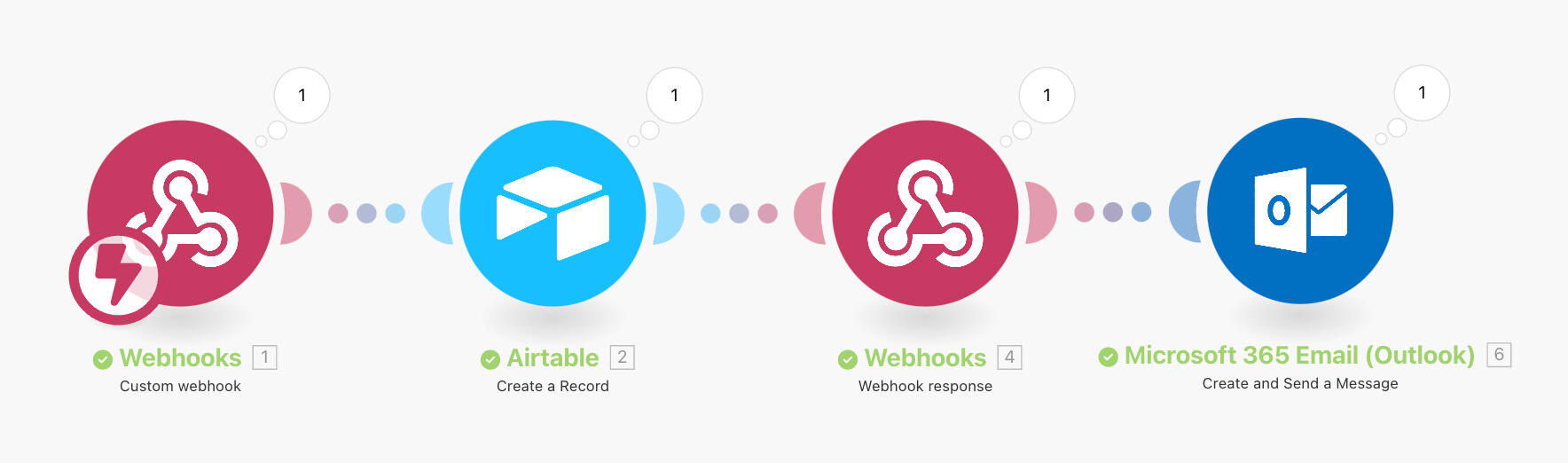 This page is built with No-code tool carrd 🔗And if you join the waitlist, this happens in No-code automation tool make 🔗: